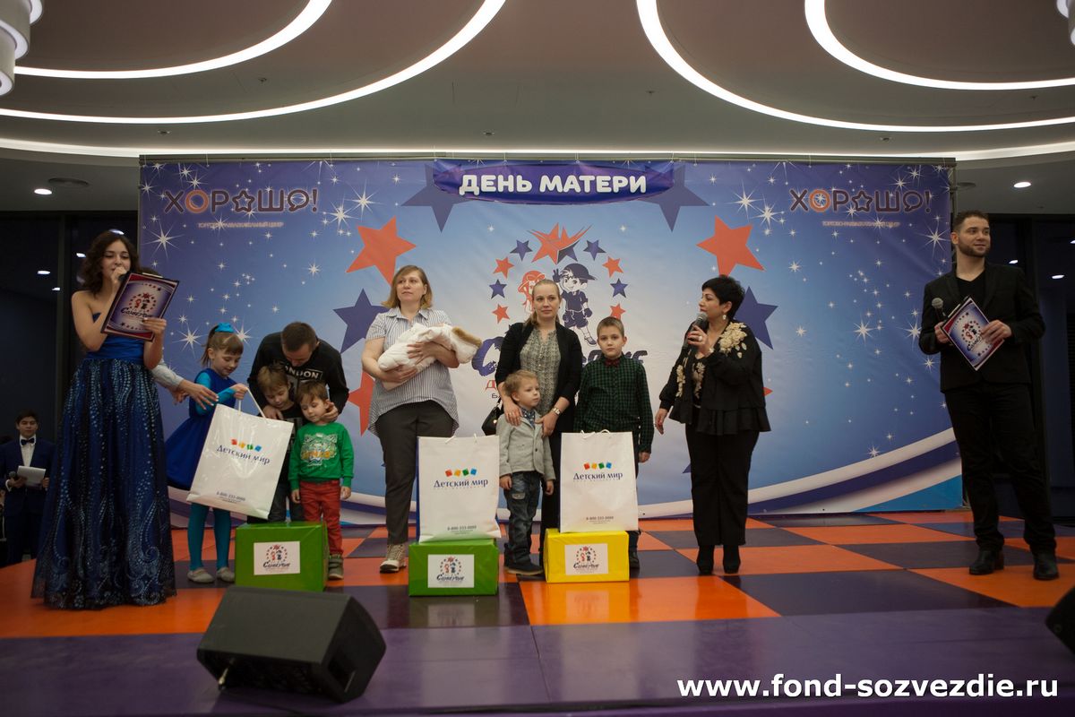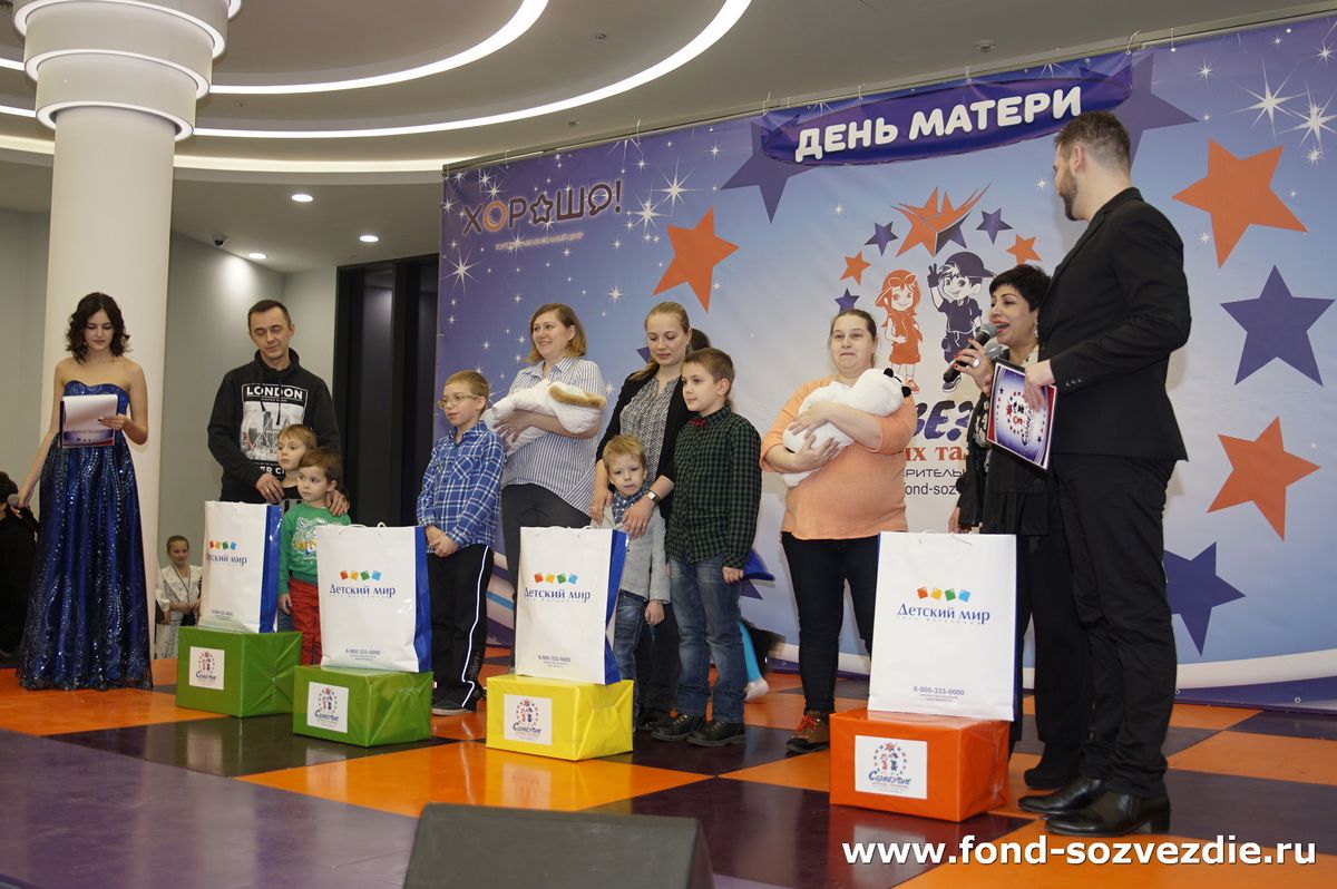 В рамках программы проходило награждение многодетных семей Хорошевского района, среди которых были семьи Фадеевых, Колесовых, Румянцевых и Венёвцевых. Заместитель председателя правления Благотворительного фонда «Созвездие детских талантов» и куратор многодетных семей по Хорошёвскому району – Марина Зурабова поздравила прекрасных мам и вручила подарки. Свои поздравления передал координатор Объединения многодетных семей города Москвы по САО Михаил Михайлович Федоренков.